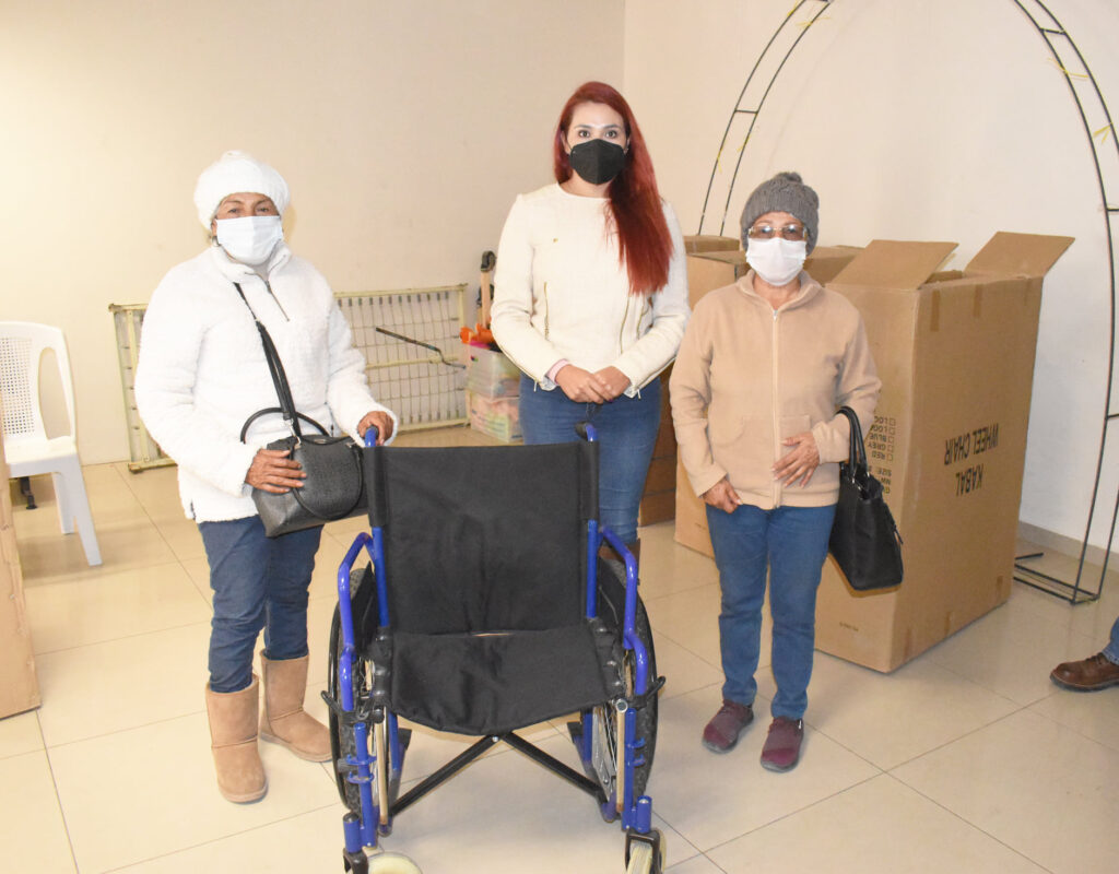La presidenta honorífica del SMDIF, Claudia Simonita Ramos Leal, y la regidora Norma Argelia Recéndez Juárez, gestionaron aparatos funcionales para apoyar a habitantes de la demarcación que padecen alguna discapacidad.