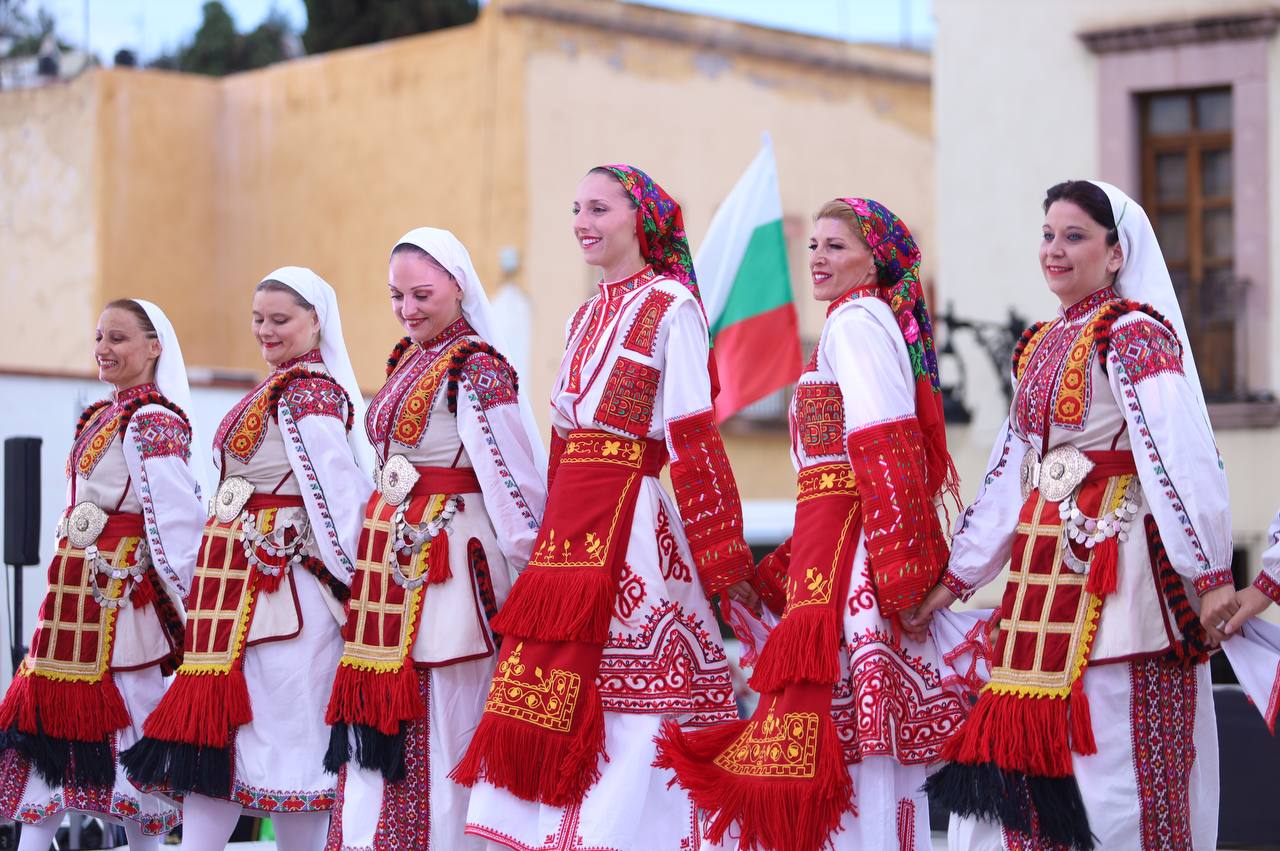 La jornada continuó en la Explanada del Congreso de Zacatecas con las presentaciones de Ensemble for Folk Songs and Dance Slavey, de Bulgaria, y la Compañía de Danza del CECADEE La Luz A.C, de Zacatecas, dejando a los asistentes maravillados con la diversidad y pasión que emanó a través sus actuaciones.