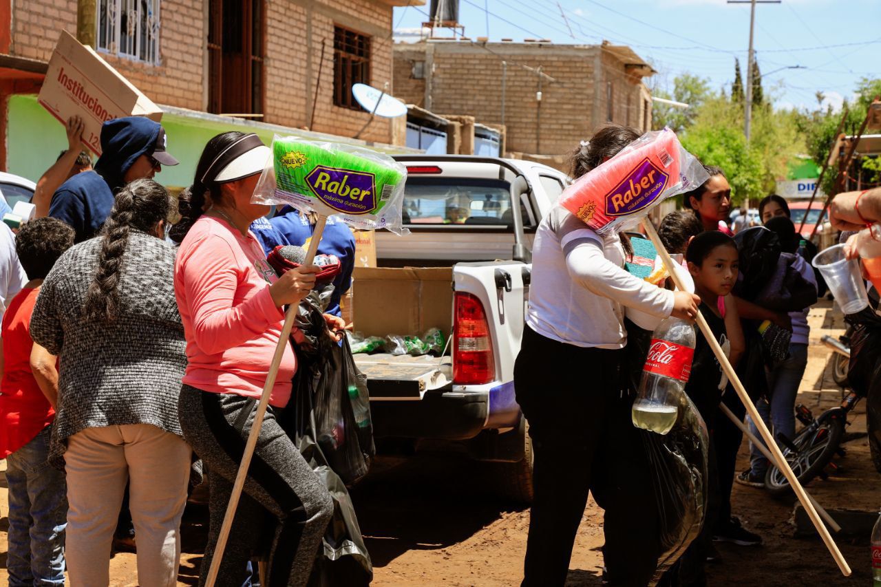 El primer edil y la presidenta honorífica del Sistema Municipal para el Desarrollo Integral de la Familia (SMDIF) entregaron despensas, vestimenta y algunos colchones a los ciudadanos más afectados.