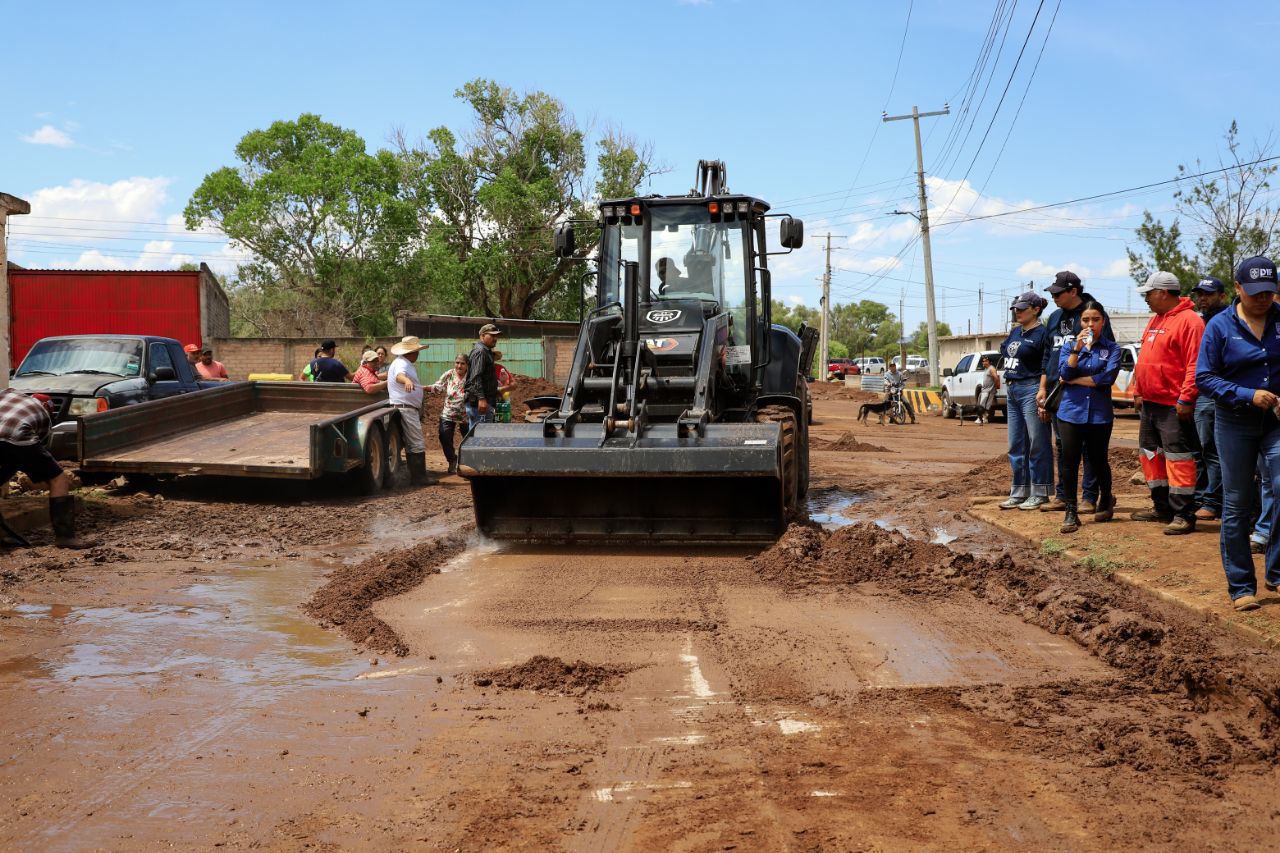 Además, el personal de Secretaría de Obras Públicas, con maquinaria, retiró el lodo y piedras que dañaron la entrada de la comunidad, dando cauce para que en las lluvias consecuentes no haya más afectaciones a la localidad.