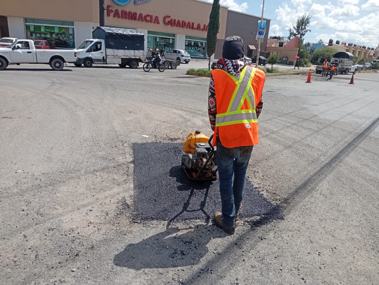 Posteriormente, se han hecho trabajos de bacheo en las vialidades Montalvo y Luis Moya, ubicadas en el centro de Guadalupe, representando poco más de 200 metros cuadrados de bacheo.