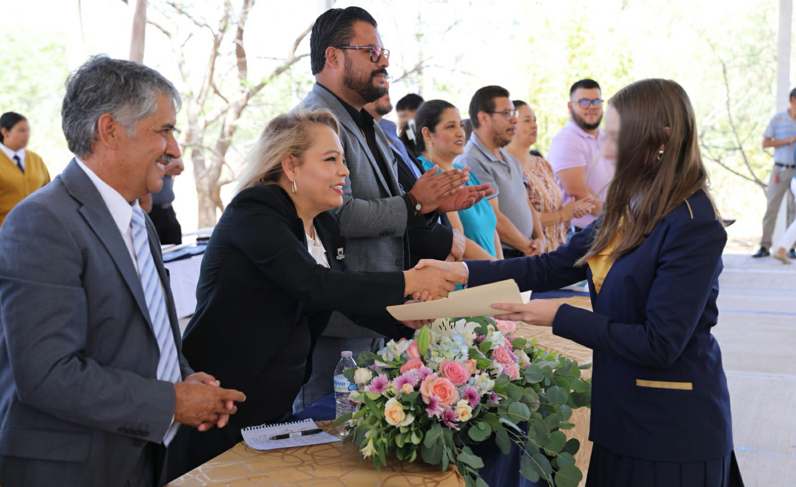 Hizo la invitación a que sigan escalando más peldaños en su formación educativa y profesional, y que siempre agradezcan el apoyo que han recibido por parte de sus padres, madres, maestras y maestros, porque son quienes siempre entregan todo para que las y los jóvenes salgan adelante.