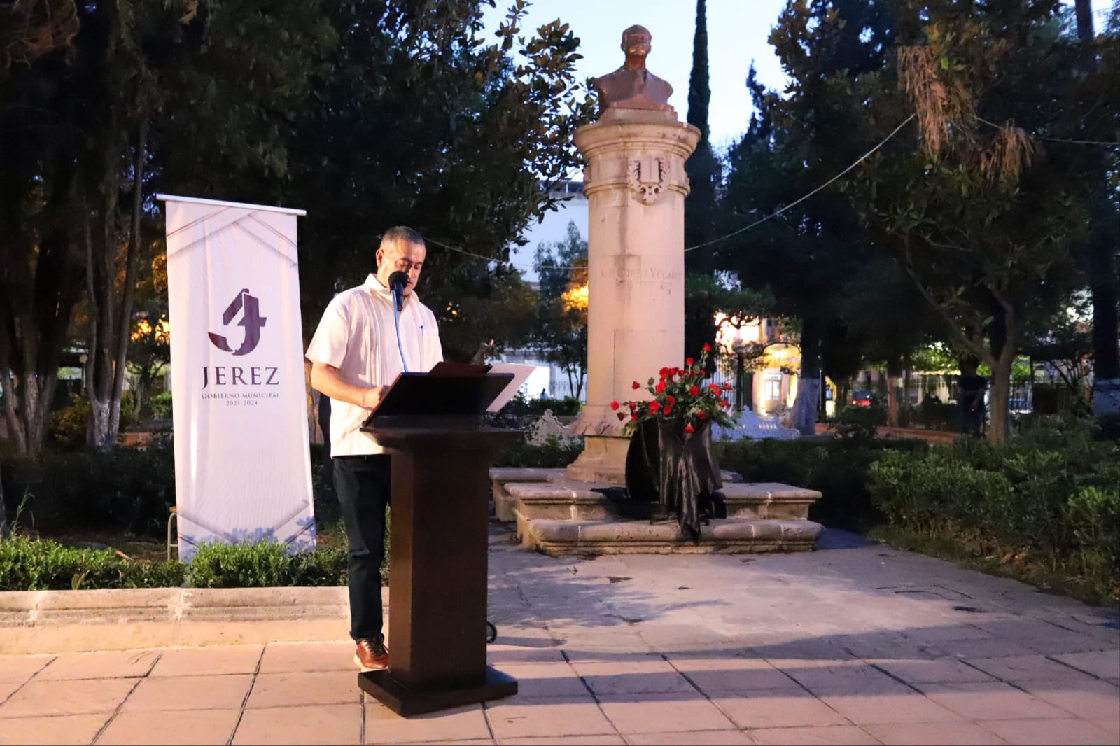 Durante el evento, en el que también estuvo acompañado por el director del Instituto Jerezano de Cultura (IJC) Víctor Hugo Huízar Iturriaga, el alcalde señaló que esta ofrenda es un símbolo del eterno agradecimiento y admiración hacia Ramón López Velarde y precisó que cada flor representa una que ha resonado a través del tiempo y ha dejado una marca imborrable en nuestra identidad cultural.