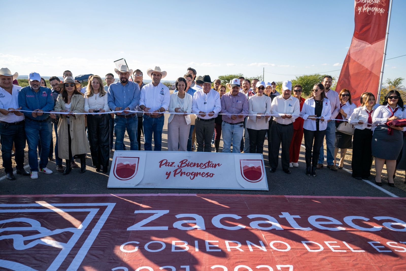Juan Aldama, Zac.- En su compromiso con el pueblo de este municipio, el Gobernador David Monreal Ávila da continuidad al Plan Estatal de Rescate Carretero, al entregar la rehabilitación del tramo Juan Aldama-General Juan José Ríos, que forma parte de los más de 2 mil kilómetros de superficie pavimentados en lo que va de su administración.