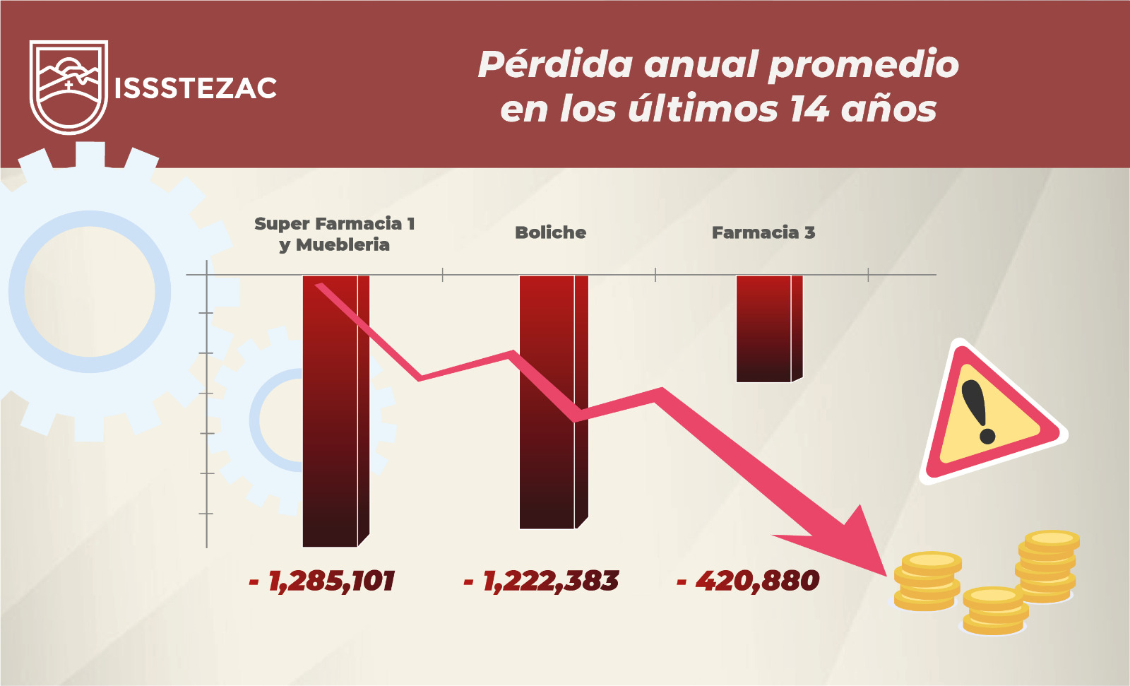 José Ignacio Sánchez González, director general del Instituto, informó que, respecto a la extinción de áreas empresariales que a lo largo del tiempo han representado una carga financiera para el Instituto, por ser deficitarias, se tiene en la actualidad a la mueblería y super farmacia 1 (ubicadas en las instalaciones del Centro Deportivo y Cultural del Issstezac) y la farmacia número 3 (frente al hospital General), así como el boliche “El Centauro”.