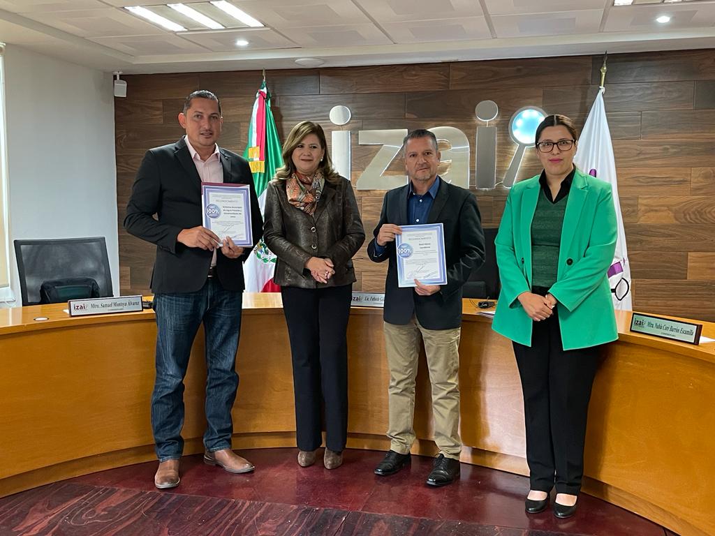 El director del órgano operador, Marco Antonio Valenzuela Esquivel, recibió de manos de la comisionada presidenta del IZAI, Fabiola Torres Rodríguez, el reconocimiento que avala las buenas prácticas de transparencia que se realizan en el SIMAPAJ.