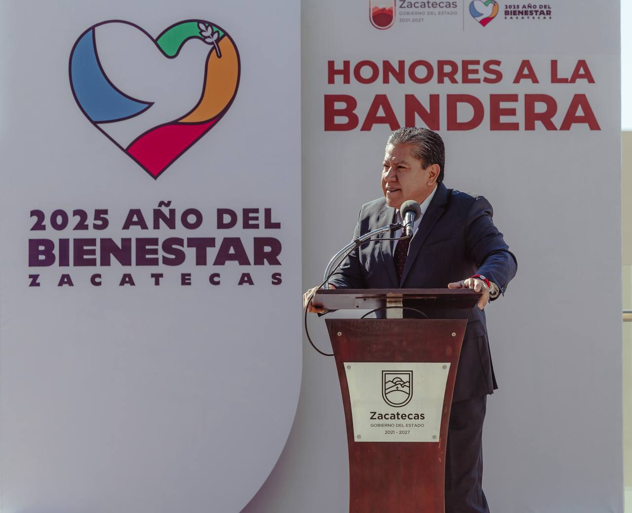 Al encabezar la ceremonia de Honores a la Bandera en las instalaciones de Ciudad Administrativa, el gobernador dijo que Zacatecas vive un momento de solidez económica y oportunidades de desarrollo.