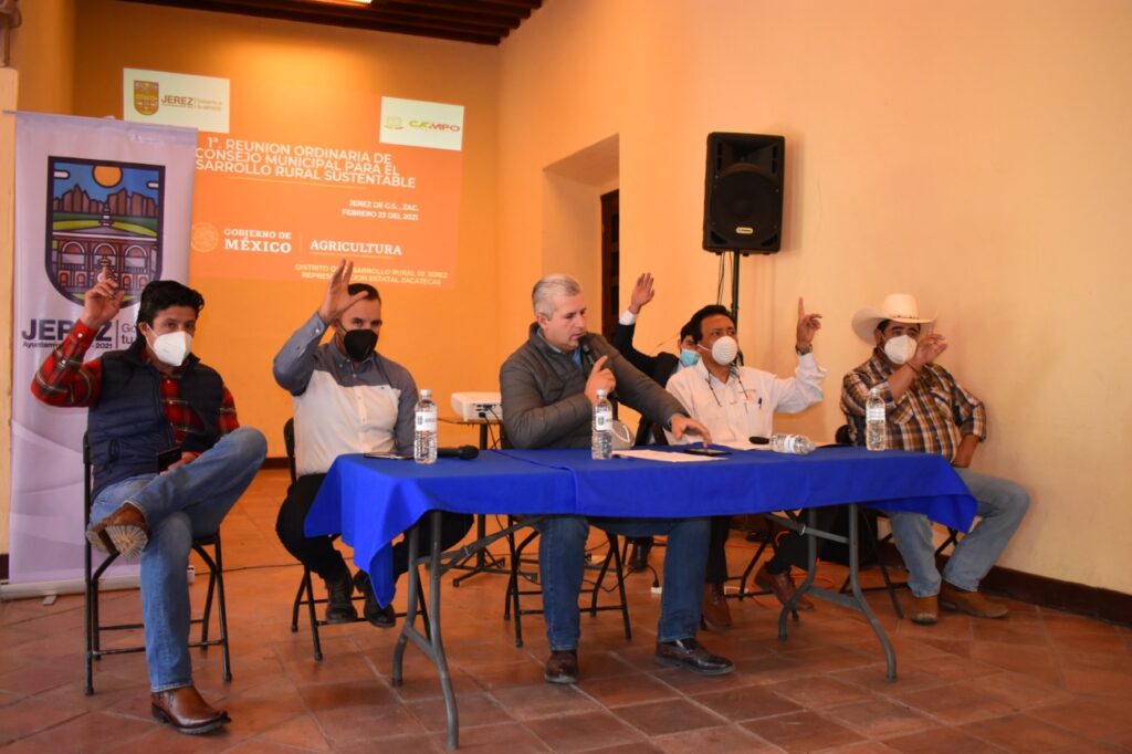 Durante la primera reunión ordinaria del Consejo Municipal para el Desarrollo Rural Sustentable, Aceves Sánchez reconoció el interés de los tres niveles de gobierno para favorecer a todos quienes trabajan el campo jerezano.