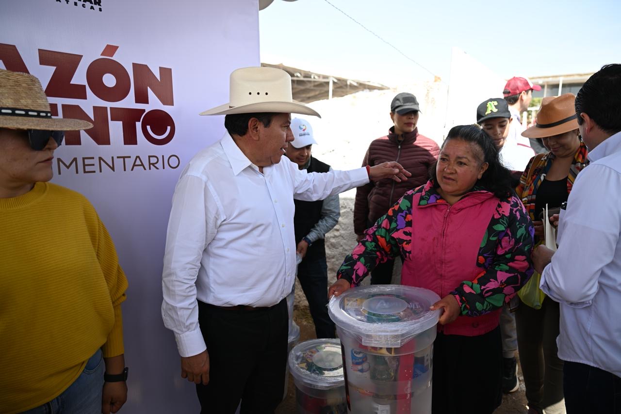 Sombrerete, Zac.- Pobladores de Sombrerete recibieron del Gobernador David Monreal Ávila sus primeros apoyos del programa alimentario “Corazón Contento”, que puso en marcha esta mañana y que llegará a las familias de todo el estado, particularmente de zonas rurales y con mayor necesidad.