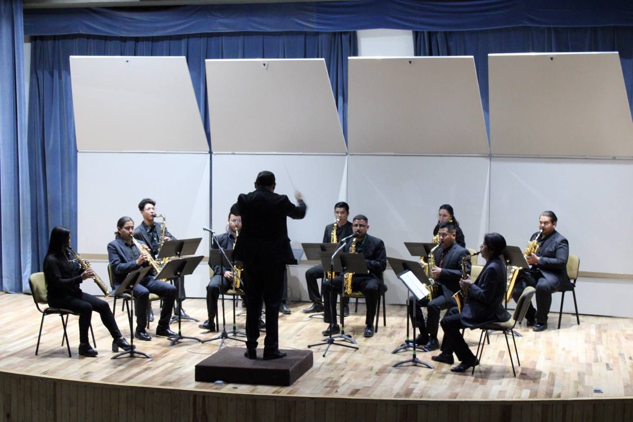 Zacatecas, Zac.- Con un repertorio que integró obras de compositores de México y Cuba, algunas de éstas con arreglos de Fernando Hernández y Lalo Herrera, el Ensamble de Saxofones, de la Universidad Autónoma de Zacatecas (UAZ), se presentó en el auditorio Juan García de Oteyza, del Museo de Arte Abstracto “Manuel Felguérez”.