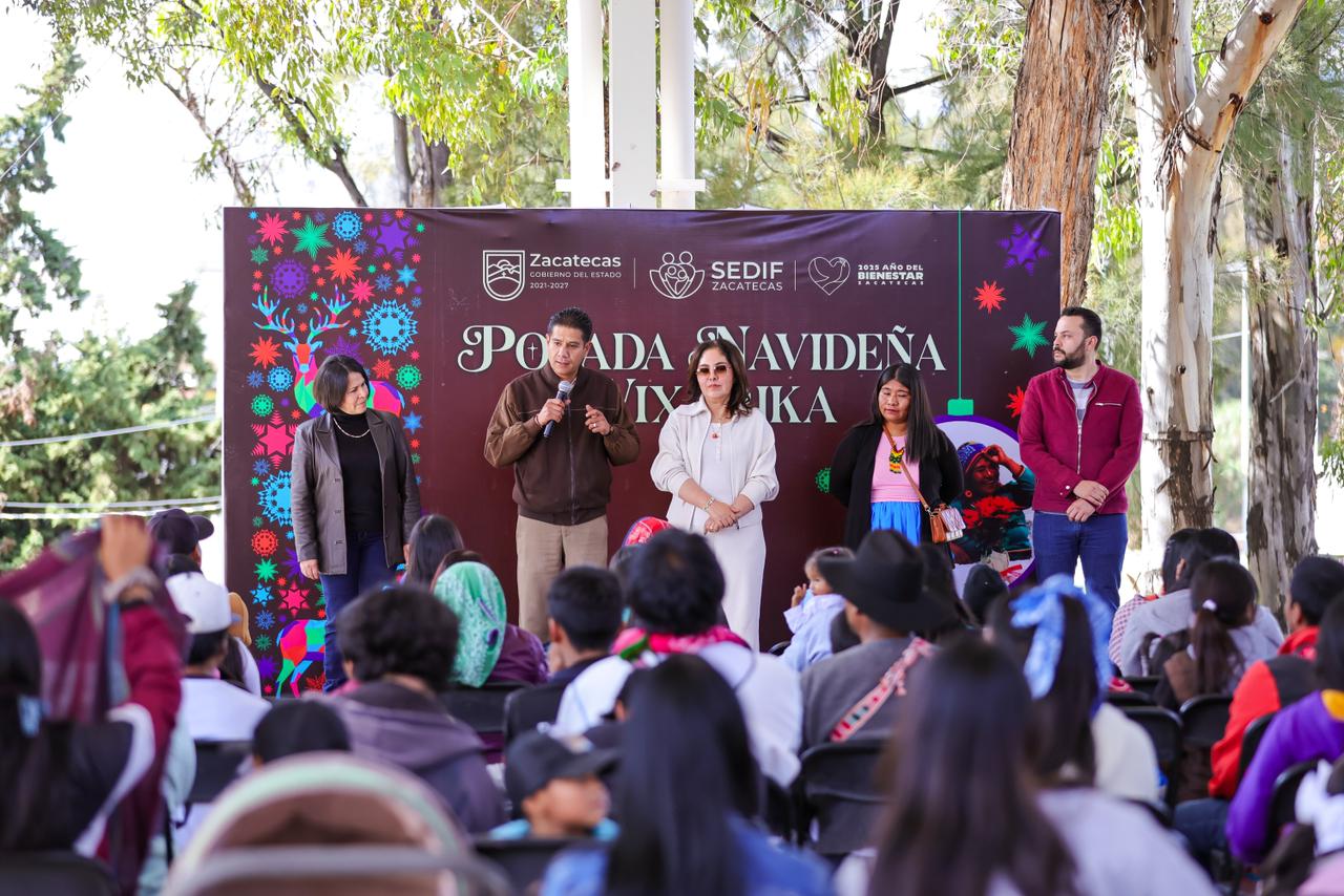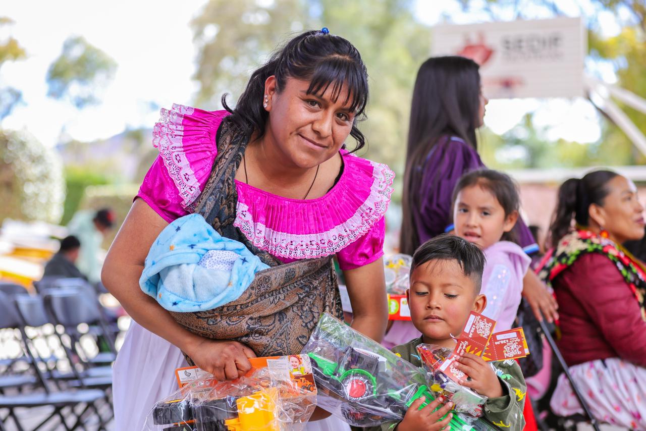 En un evento especial, la Presidenta Honorífica del Sistema Estatal para el Desarrollo Integral de la Familia (SEDIF), Sara Hernández de Monreal, encabezó la entrega de bolos, cobijas, paquetes alimentarios y juguetes, destinados a niñas, niños y familias pertenecientes a esta etnia.