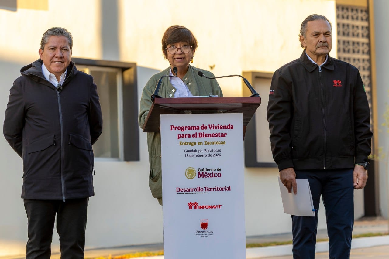 “Aquí en Zacatecas, gracias al apoyo del Gobernador David Monreal y de los presidentes y presidentas municipales, hemos avanzado rápidamente”, y mencionó el inicio de obras en distintos municipios, “ya iniciamos en cuatro conjuntos que representan más de 3 mil viviendas en los municipios de Fresnillo, de Guadalupe y de Zacatecas”.