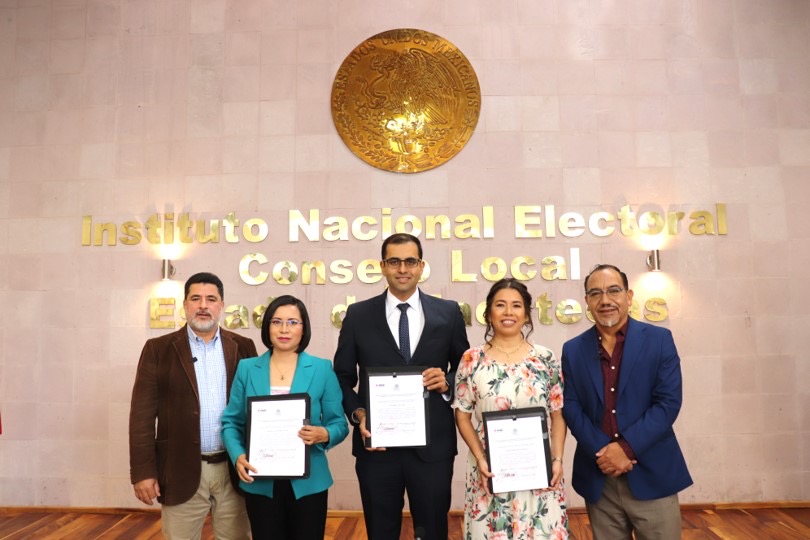 Zacatecas.- Dando cumplimiento a las disposiciones del acuerdo emitido por el Consejo General del Instituto Nacional Electoral (INE) en el que se aprueba la designación de consejeros electorales del Consejo General del Instituto Electoral del Estado de Zacatecas (IEEZ); en evento formal celebrado en esta misma fecha, el Vocal Ejecutivo de la Junta Local de INE Zacatecas, Matías Chiquito Díaz de León, entregó su respectivo nombramiento a la Dra. Ma. de la Luz Domínguez Campos, a la Mtra. Gabriela Elizabeth Muñoz Rodríguez y al Mtro. Víctor Manuel Trejo Juárez; como consejeros electorales del IEEZ para el periodo 2025-2032.