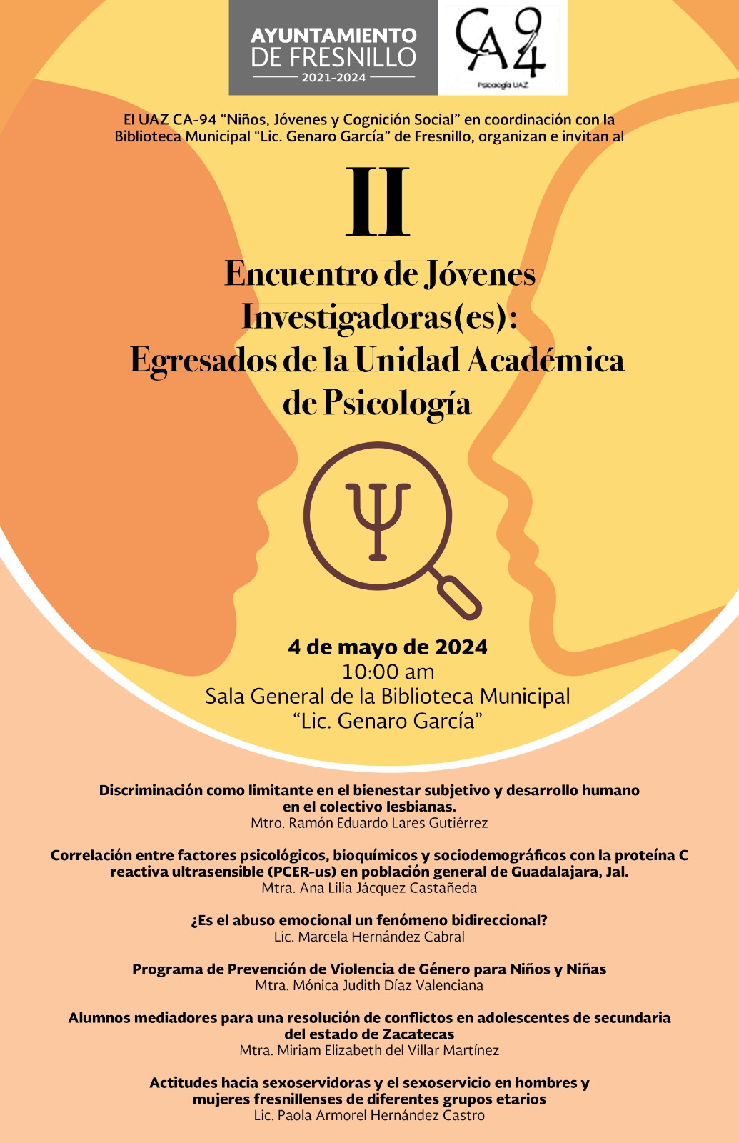 La Presidenta Municipal, Rita Rocío Quiñones de Luna informó que la Universidad Autónoma de Zacatecas (UAZ), en coordinación con la Biblioteca Municipal “Lic. Genaro García”, organizarán el Segundo Encuentro de Jóvenes Investigadoras (es), egresados de la Unidad Académica de Psicología.
