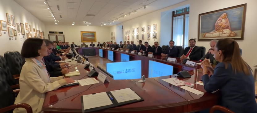 A través de su cuenta de la red social X, la mandataria federal compartió un breve video en el que muestra aspectos de su encuentro con empresarios, acompañada por la titular de la secretaría de Energía, Luz Elena González; la secretaria del Medio Ambiente y Recursos Naturales, Alicia Bárcena; el secretario de Hacienda y Crédito Público, Edgar Amador Zamora; y el director general de Pemex, Víctor Rodríguez Padilla.
