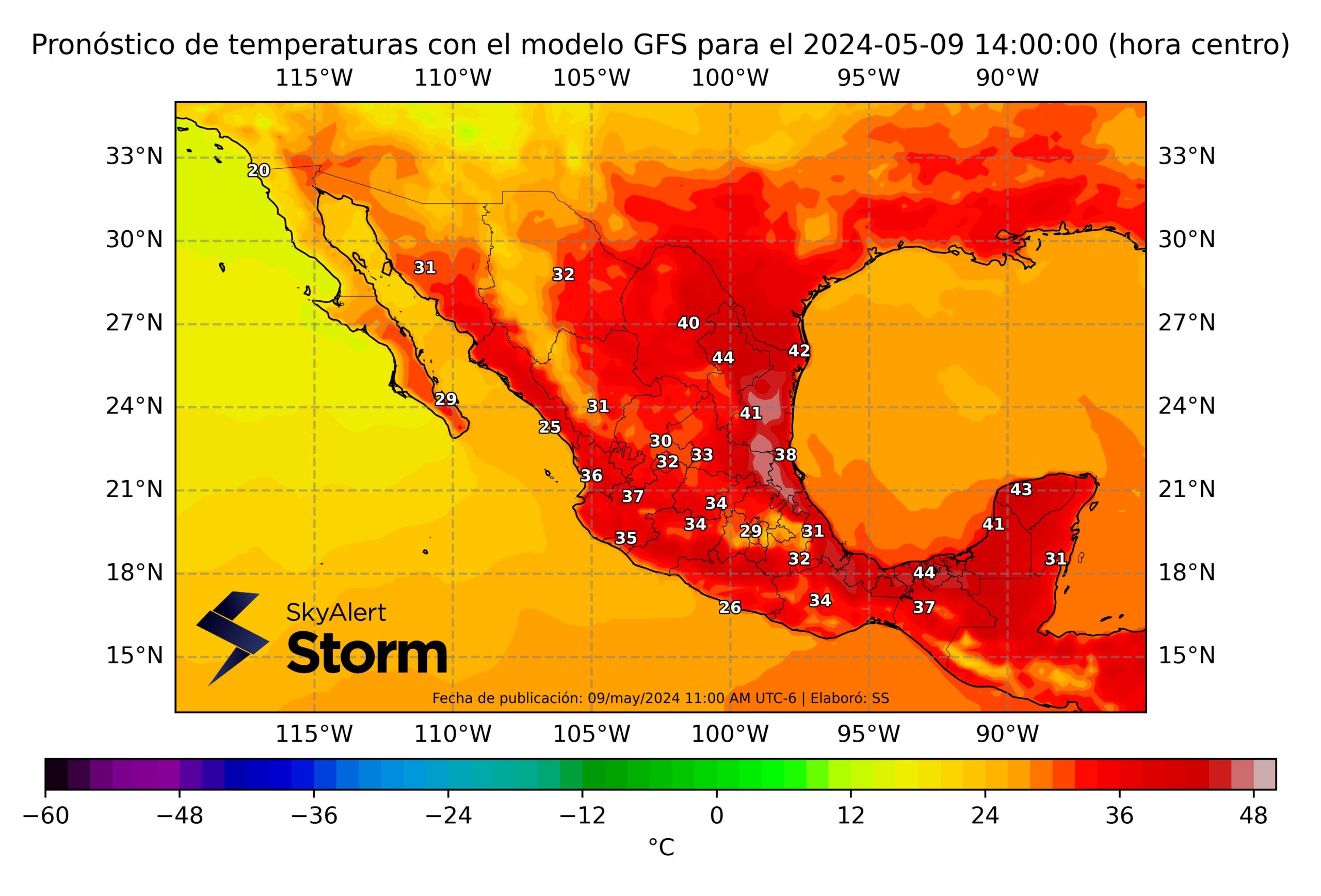 Para este jueves 9 de mayo, las temperaturas más altas se hallarán en los estados del noreste y Golfo de México, derivado de la segunda ola de calor que azota la República Mexicana esta semana, por lo que se prevé que sea uno de los días más calurosos del año