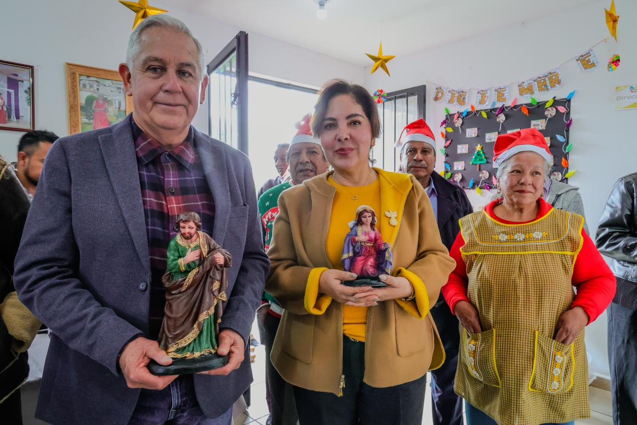 Como parte de la convivencia, se dispersaron apoyos invernales como cobijas, chalecos, chamarras y chales, así como paquetes alimentarios y bolos, que simbolizan la tradición y el cariño característicos de estas fechas.