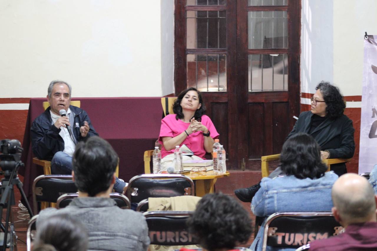 La jornada cerró con la mesa de diálogo “La influencia del cine en mi escritura”, en la que compartieron experiencias y procesos creativos los escritores y guionistas Brenda Rodríguez (Aguascalientes), Angélica Cortázar (San Luis Potosí) y Víctor Avelar (Zacatecas), quienes reflexionaron sobre la manera en que las imágenes cinematográficas se convierten en detonantes literarios.