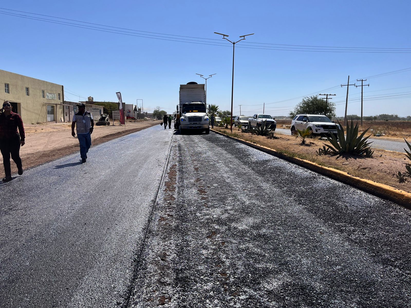 Rita Rocío Quiñones de Luna, presidenta municipal, acompañó al mandatario estatal David Monreal Ávila a supervisar la obra de construcción de carretera a la comunidad de Estación San José, una de las más pobladas de El Mineral.