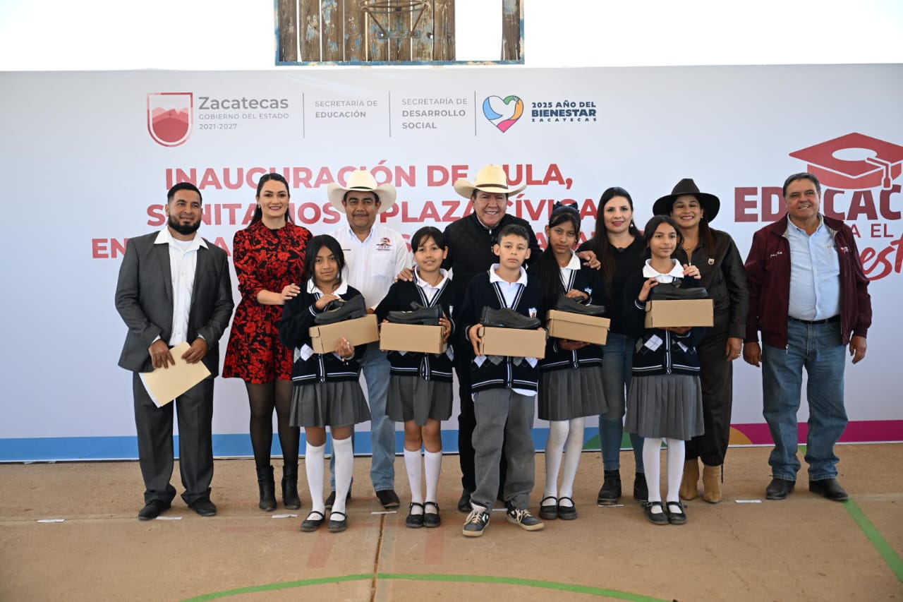 Con el compromiso de dignificar la infraestructura educativa y garantizar condiciones óptimas para la niñez zacatecana, el Gobernador David Monreal Ávila inició el programa de entrega de calzado e inauguró un aula y servicios sanitarios en la Escuela Primaria “José María Morelos y Pavón”, ubicada en la comunidad San José de la Venta, en el municipio de Pinos.