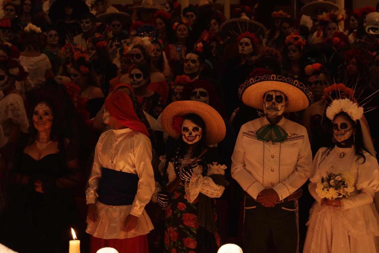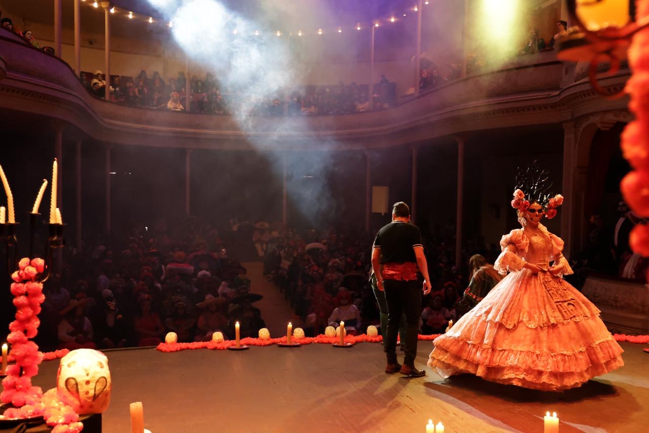 Inundan fiesta y tradición al Teatro Fernando Calderón con grabación de promocional del Festival de Día de Muertos 2025