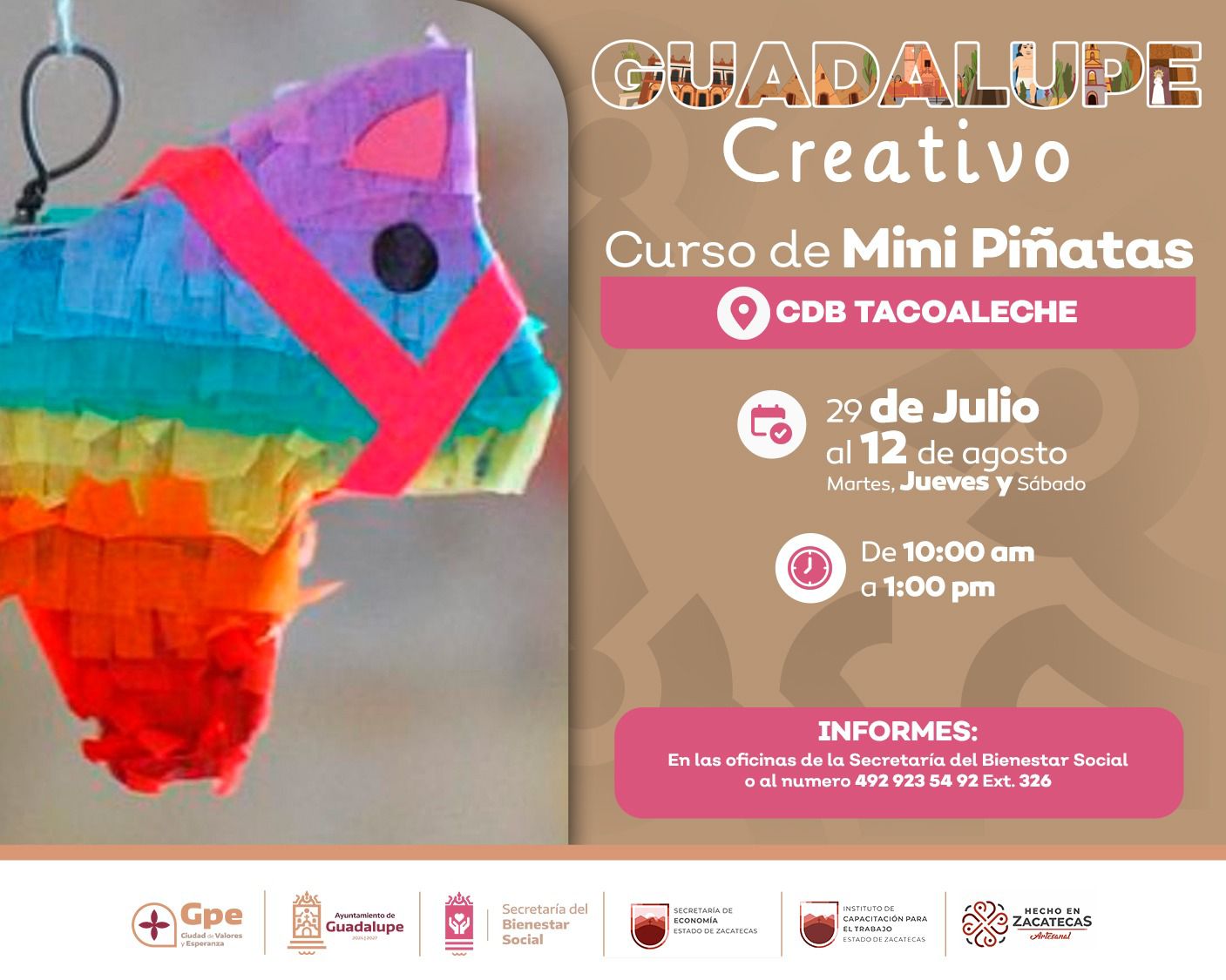 Los cursos que se ofrecerán incluyen la elaboración de mini piñatas, una actividad ideal para desarrollar la creatividad infantil y fomentar el conocimiento de nuestras tradiciones festivas.