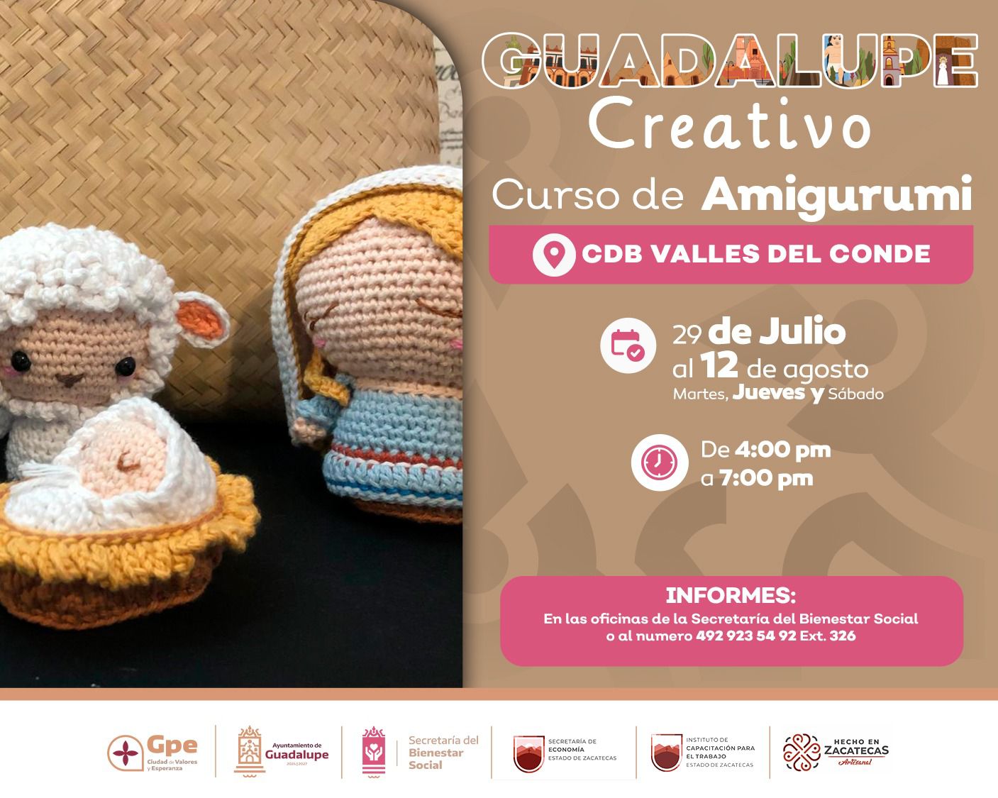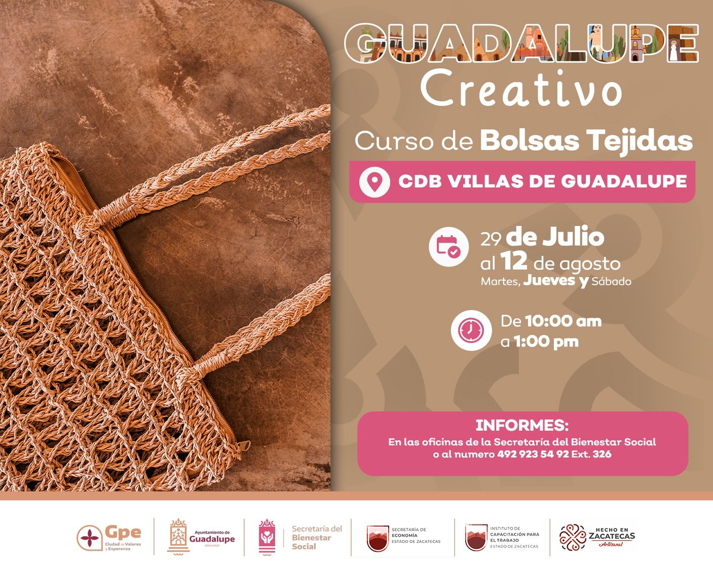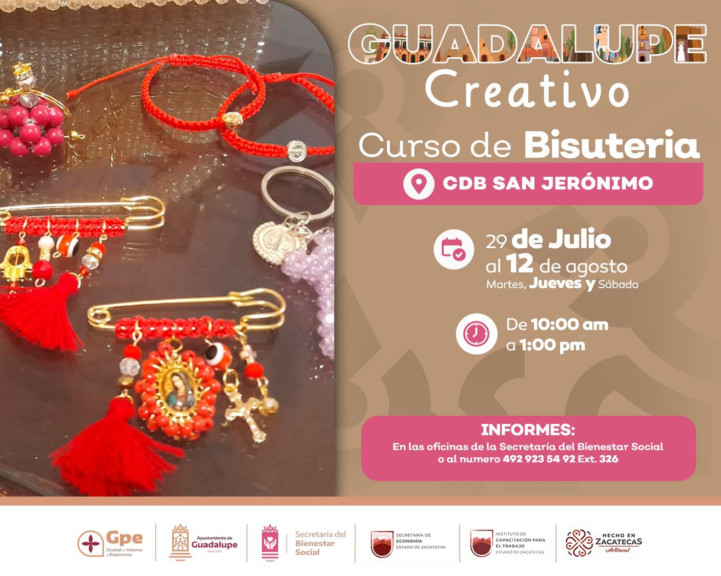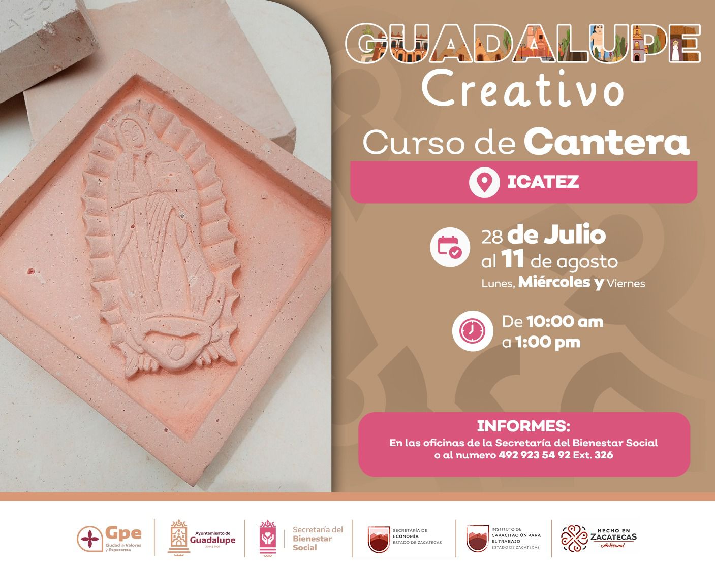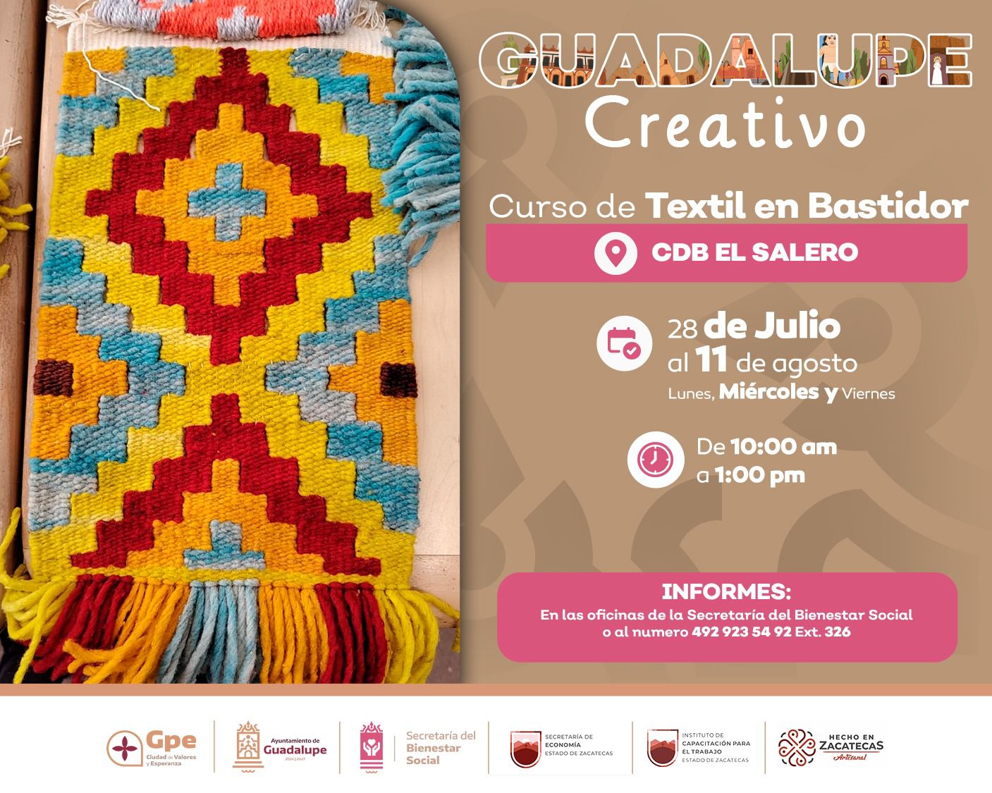 Para inscribirse o solicitar más información, las personas interesadas pueden acercarse directamente a las oficinas de la Secretaría de Bienestar Social del Ayuntamiento de Guadalupe, o comunicarse al número telefónico 4929235492, extensión 326. La participación es gratuita y con cupo limitado.
