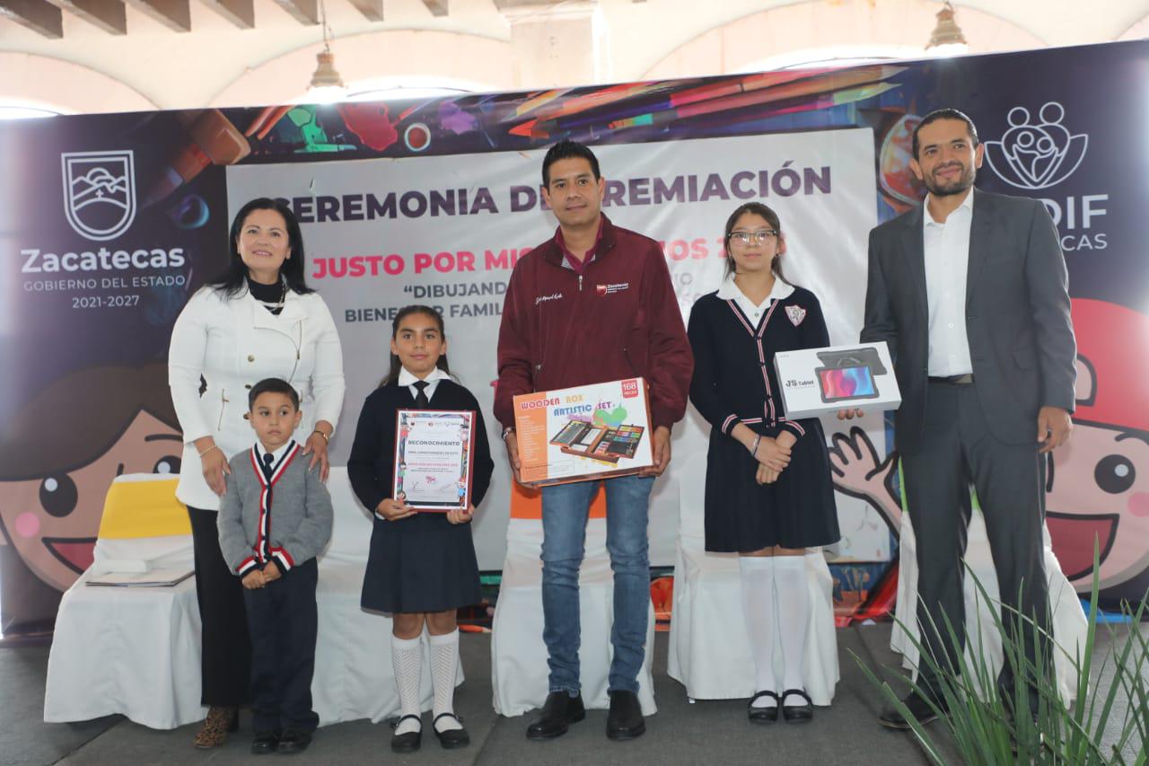 Zacatecas, Zac.- Con la participación de más de mil 600 niñas y niños, de 22 municipios del estado, el Gobierno de Zacatecas, que lidera el mandatario David Monreal Ávila, a través del Sistema Estatal para el Desarrollo Integral de la Familia (SEDIF), llevó a cabo la ceremonia de premiación del Concurso de Dibujo Infantil “Justo por Mis Derechos 2025”, bajo el lema “Dibujando desde mi propio bienestar familiar, emocional y social”.