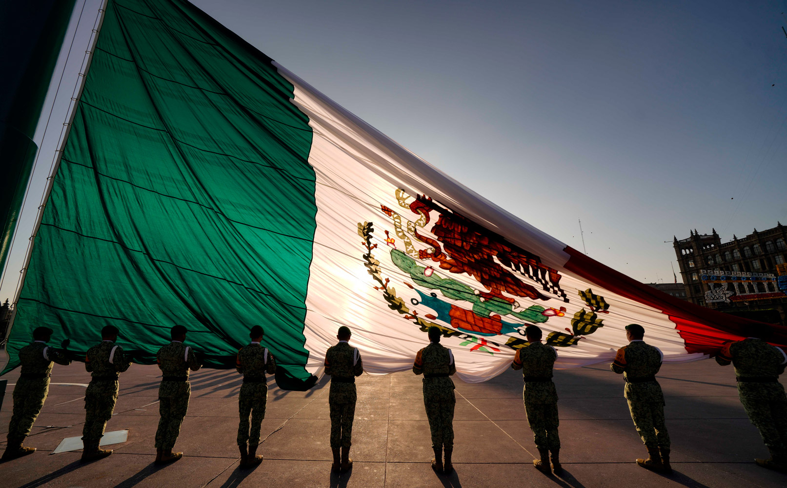 Alrededor de las 7:16 horas (tiempo del centro), el mandatario salió de Palacio Nacional hacia la Plaza de la Constitución para participar en el acto protocolario junto al jefe de gobierno de la Ciudad de México, Martí Batres Guadarrama; las secretarias de Gobernación, Luisa María Alcalde Luján, y de Seguridad y Protección Ciudadana, Rosa Icela Rodríguez Velázquez; los secretarios de la Defensa Nacional, Luis Cresencio Sandoval González, y de Marina, José Rafael Ojeda Durán; la coordinadora nacional de Protección Civil, Laura Velázquez Alzúa; el comandante de Guardia Nacional, David Córdova Campos y el presidente nacional de la Cruz Roja Mexicana, Carlos Freaner Figueroa.