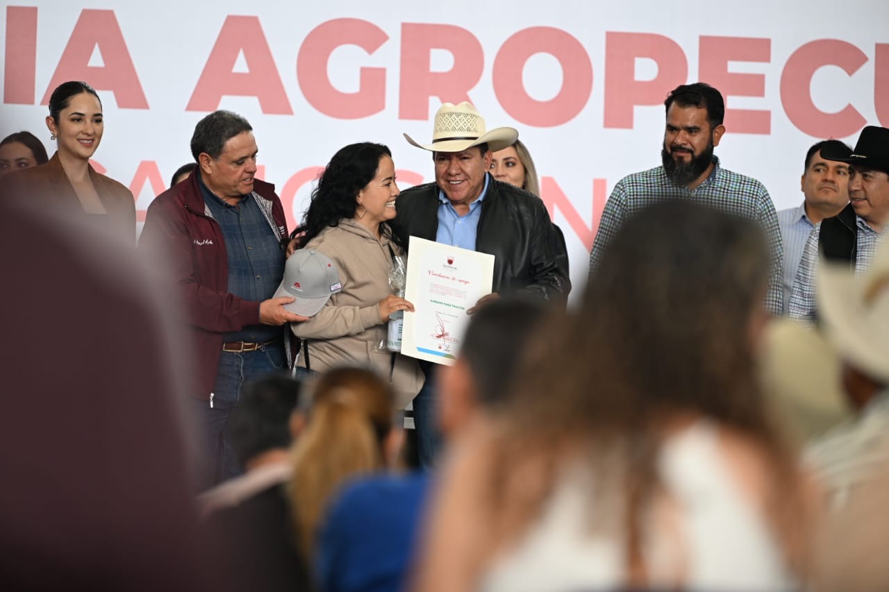 Participaron 120 productoras y productores en la rifa de 15 tractores, con subsidios de 250 mil pesos. Además, se entregaron 110 implementos, así como el apoyo a 144 campesinos con maquinaria especializada, y a otros ocho, con sementales.