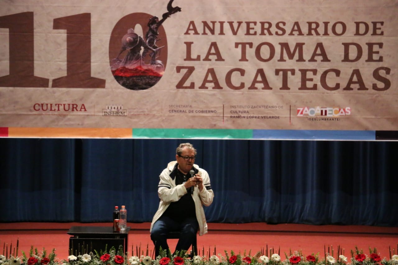 Así se dirigió el actual Director General del Fondo de Cultura Económica (FCE), en la conferencia magistral “La Toma de Zacatecas”, que ofreció en el marco de la serie de actividades académicas conmemorativas del 110 Aniversario de dicha gesta, que organiza el Gobierno del Estado, a través de distintas dependencias, entre ellas el Instituto Zacatecano de Cultura (IZC) “Ramón López Velarde”.