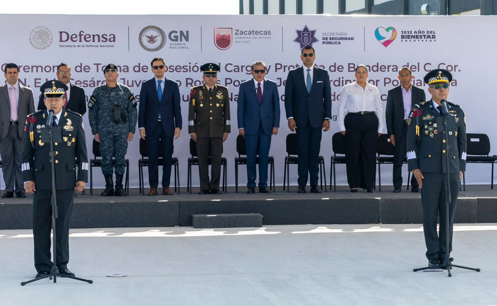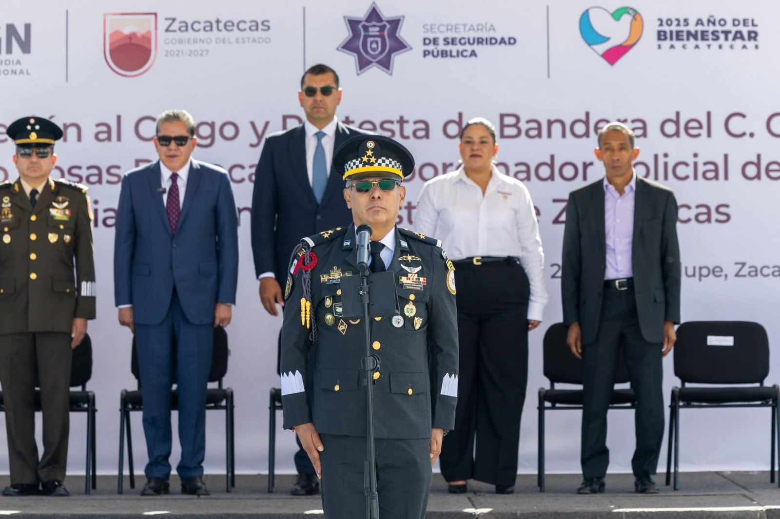 Este lunes, el Gobernador David Monreal Ávila encabezó la ceremonia de toma de posesión al cargo y protesta de Bandera, al Coronel Césareo Juventino Rosas Popoca, como Jefe Coordinador Policial de la GN, en donde felicitó al nuevo mando, por la responsabilidad que le encomendó el Coordinador estatal de la institución, General Vicente Dimayuga Canales.