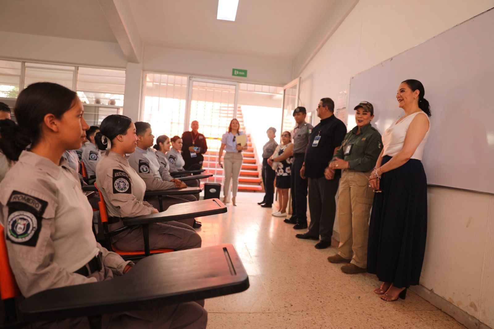 En el acto cívico estuvieron presentes el director del Instituto de Formación Profesional y la directora del Bachillerato General Policial, además de las y los 375 estudiantes, de los cuales 111 están por graduarse.