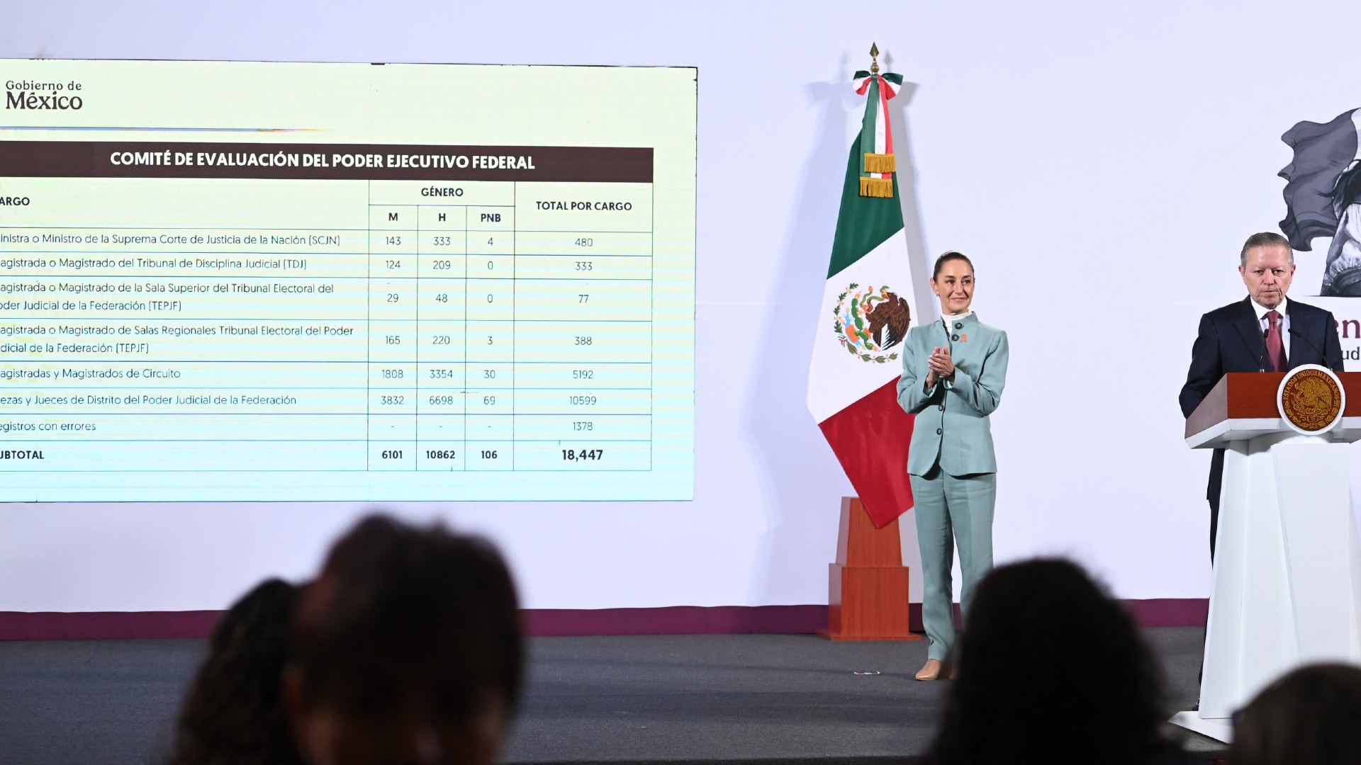 Por su parte, Arturo Zaldívar, integrante del Comité de Evaluación del Poder Ejecutivo, explicó que, de las 18,447 solicitudes, 10,862 corresponden a hombres, 6,101 a mujeres y 106 no binario.