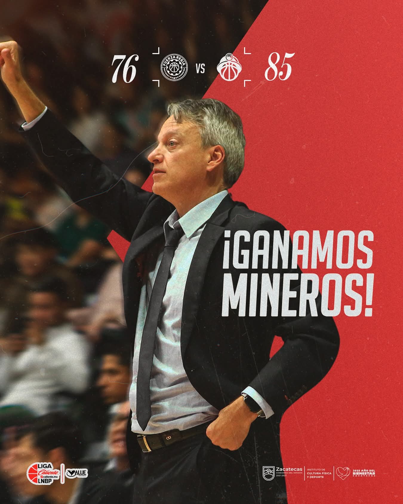 Monterrey.- Los Mineros de Zacatecas realizaron un gran partido defensivo y superaron 76-85 a Fuerza Regia, en la fecha 17 de la Temporada 2025 de la Liga Nacional de Baloncesto Profesional